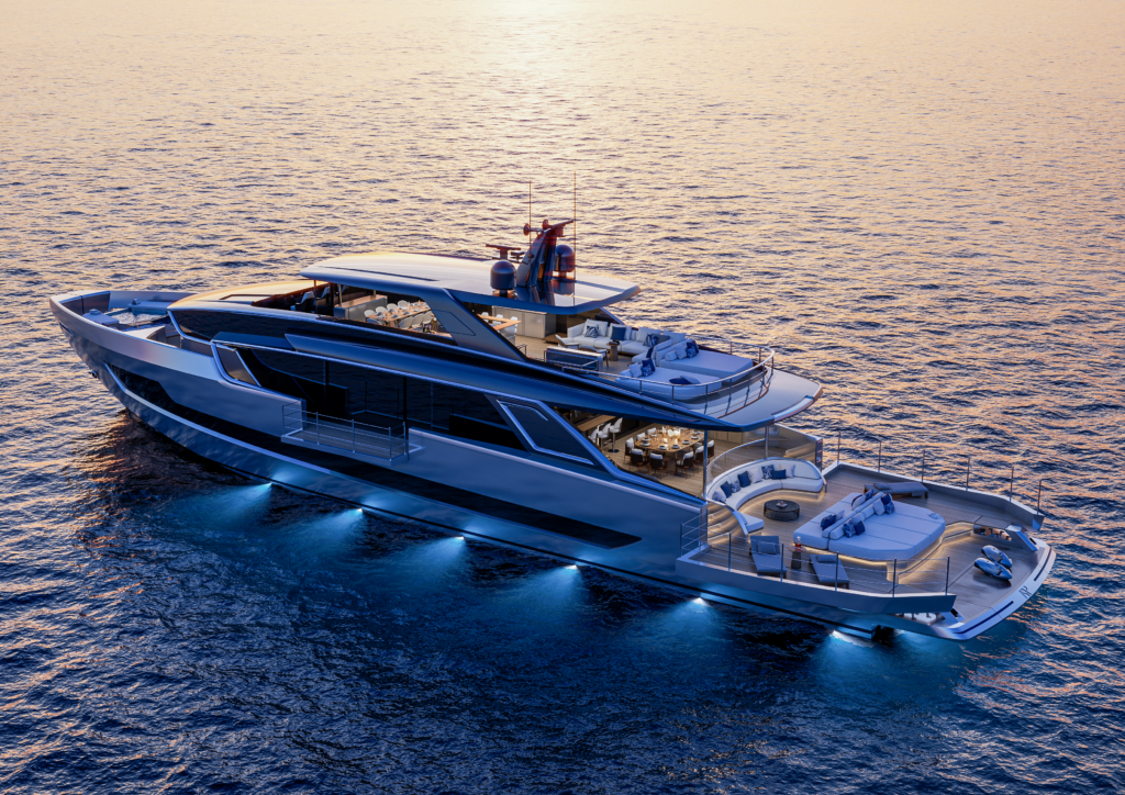 The first unit has been sold to an American client and is currently under construction at Palumbo Superyachts Ancona, will be launched this summer and will make its world debut at the upcoming Cannes Yachting Festival.