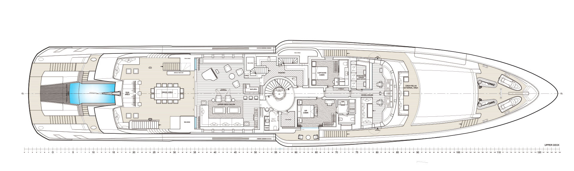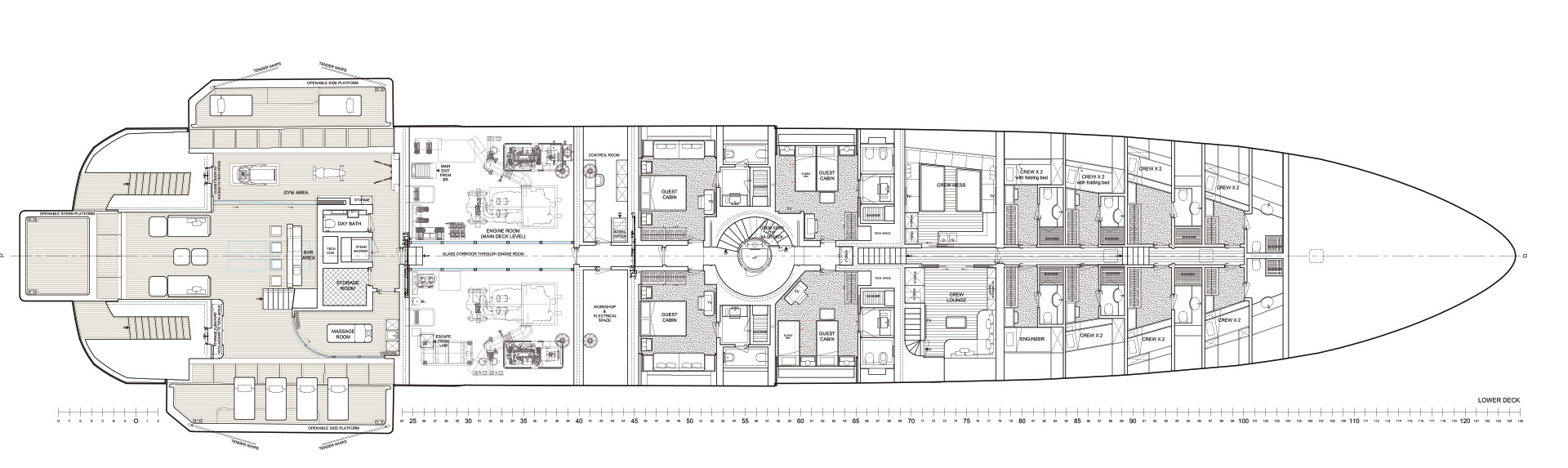 Sei cabine per 12 ospiti e nove per 16 membri d’equipaggio per un’esperienza impeccabile