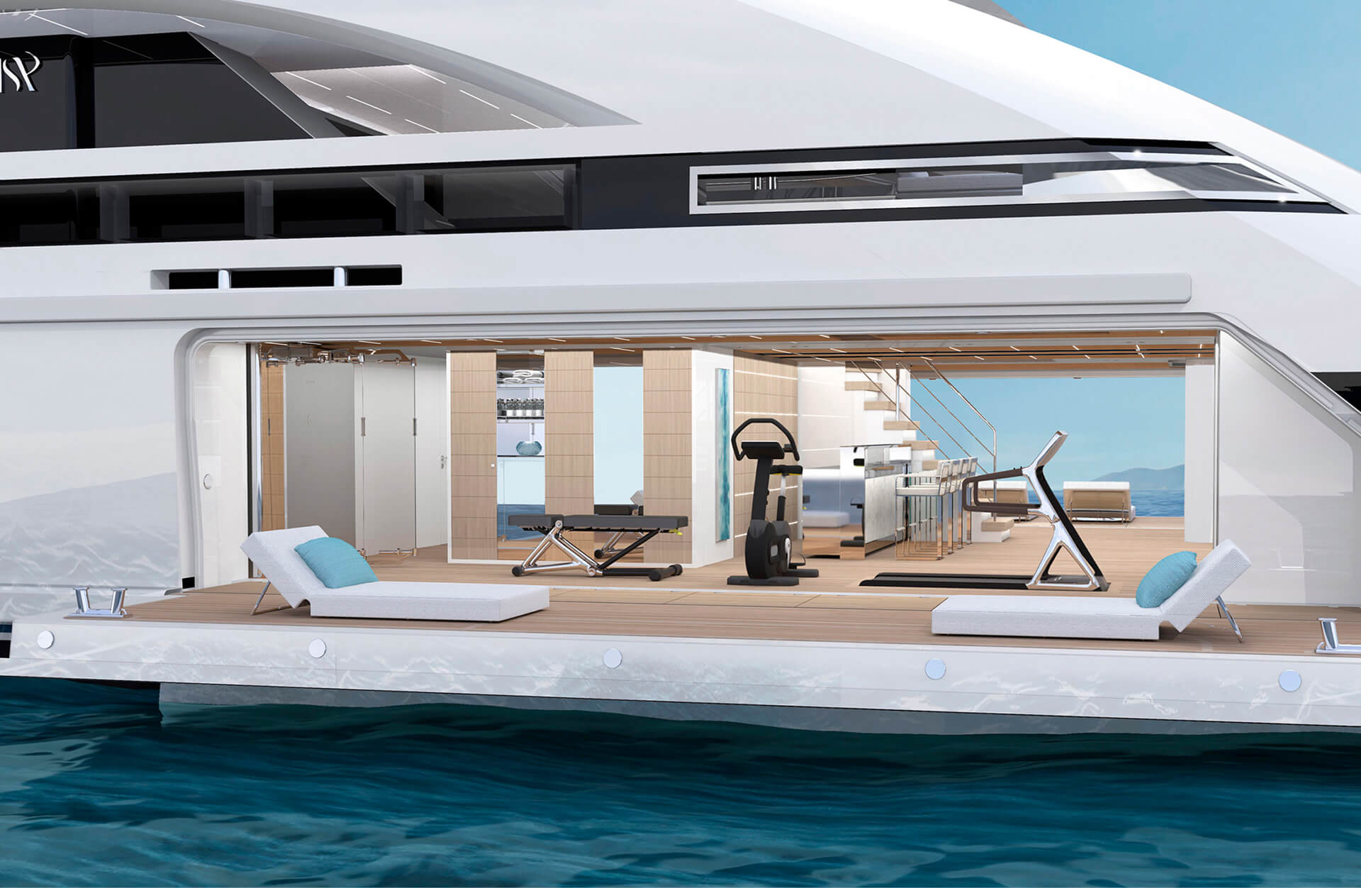 Il beach club include un’autentica SPA completa di sauna e massage room, zona living e bar tutto con sistema di illuminazione molto scenico